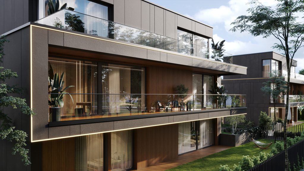 Unități rezidențiale moderne, cu arhitectură contemporană, spații vitrate ample și design orientat spre funcționalitate.